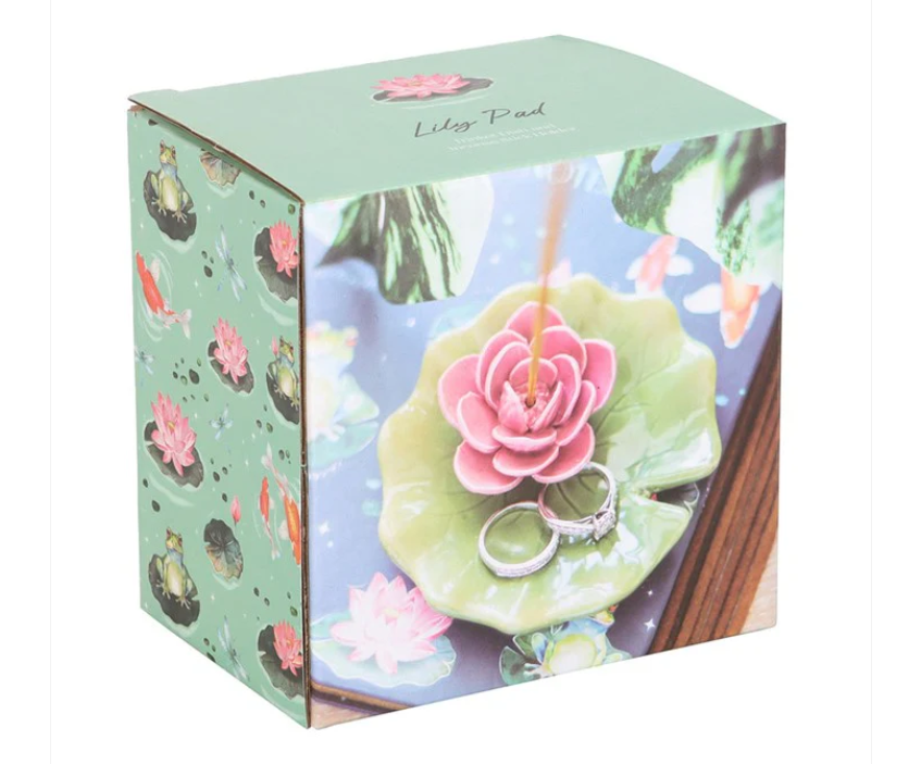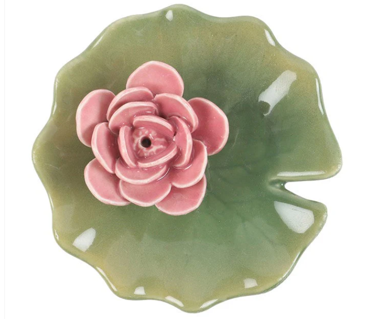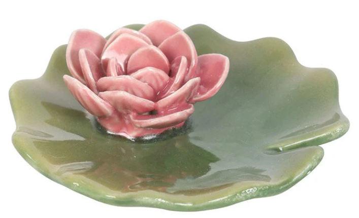 Ceramic Lily Pad Incense Holder & Jewellery Dish – Pink & Green